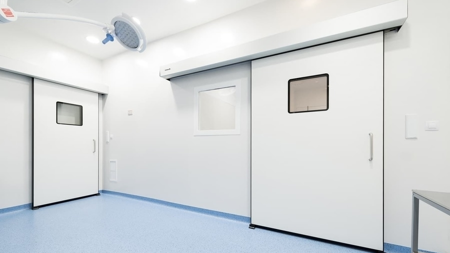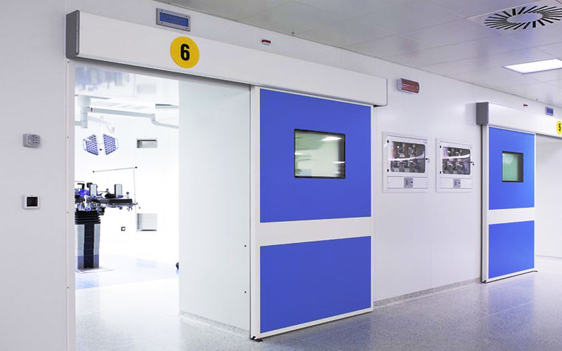 Additionally, sensors and access controllers ensure smooth and safe movement for staff and visitors. As a result, the system maintains hygiene, improves security, and supports efficient traffic flow in sensitive areas like hospitals, laboratories, cleanrooms, and pharmaceutical facilities. Example hospital use interlocking auto door